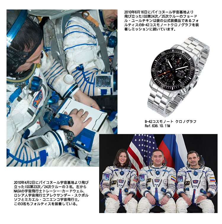それに先駆け、ISSではこのプログレスをドッキングさせるスペースポートを空けるため、高度を調整し位置を移動できるソユーズカプセル(23S)をカーゴモジュールのあるドッキングポートへと移動させる作業をしました。6名のクルーと共に、引き続きフォルティスの腕時計はオフィシャルウォッチとしてISSでミッションに就いています。 |