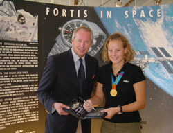 23歳のアンケは魅力的で現代的な女性です。彼女とドイツのホッケーチームは、勝つ見込みのないチームとしてスタートし、よもや祖国に金メダルをもたらすとは誰も予想していませんでした。2004年10月18日、彼女はローザンヌにあるIOC(国際オリンピック協会)が後援するオリンピック博物館で、“SportStar Award 2004”を受け取りました。アンケは真のファイティング・スピリットを示し、ホッケーの分野だけでなくネパールの女の子の孤児院を経済的に援助するなどの貢献もしています。そしてフォルティスは、彼女のネパールの少女たちへの慈善事業のためにオリジナルのコスモノートセットを寄付しました。アンケ・クーンはフォルティスの大使として、クラシックでかつスポーティな「フリーガークラシック クロノグラフ」と、フォルティスの女性用角形の「スペースマティック SL」を選びました。