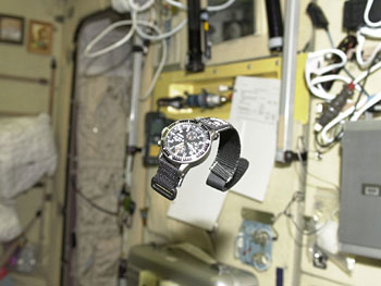 クロノグラフ」。宇宙飛行士用のベルクロベルト(別売りで¥3,150)が装着されている。