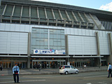 会場となったマリンメッセ福岡と、ドイツ航空宇宙飛行センターのブース |
