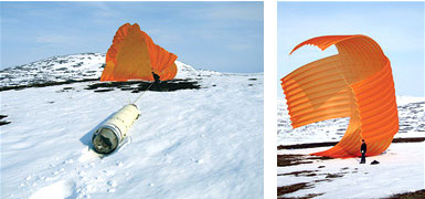 着陸後の実験モジュールの引き上げ・回収作業(©スウェーデン宇宙公社) |