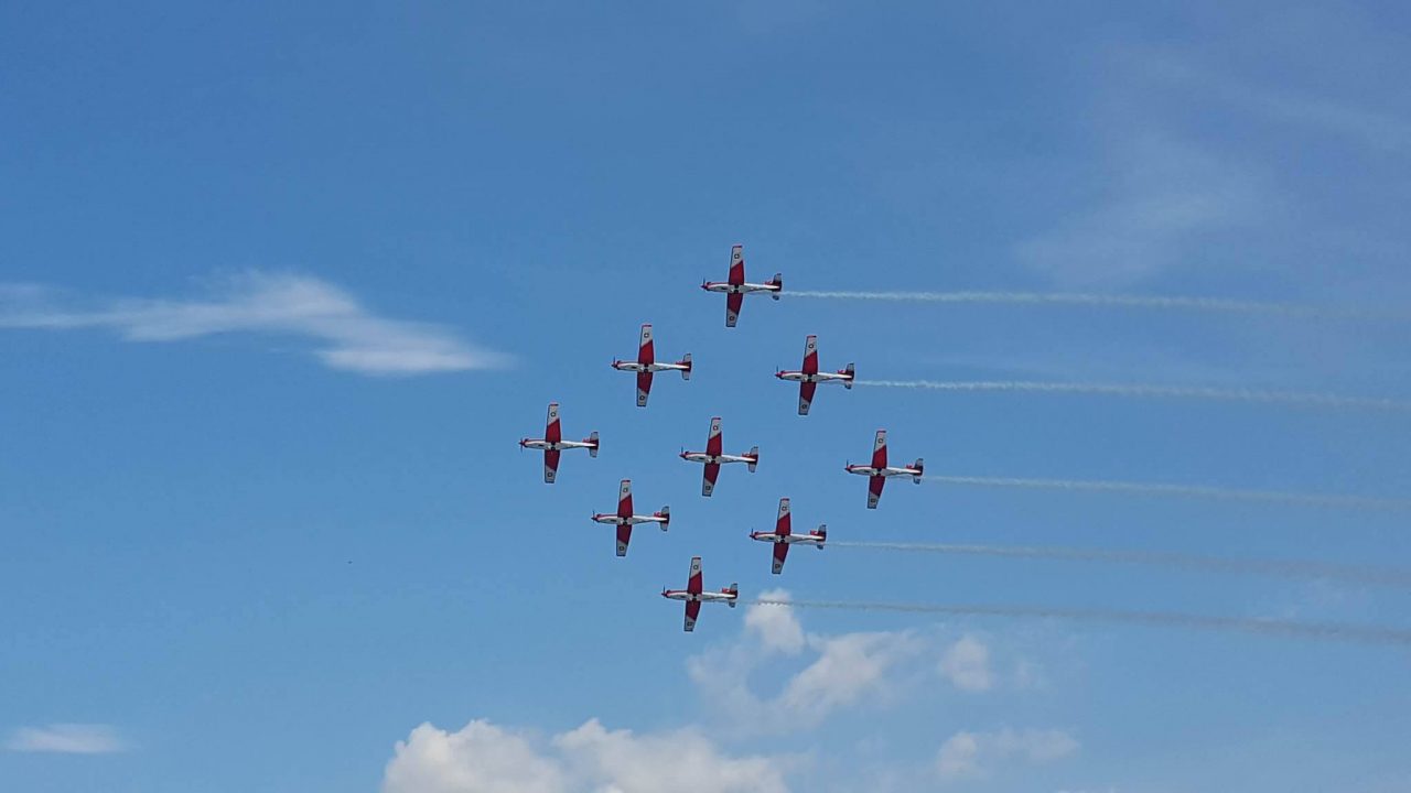 さらに多くの空軍が彼らの軍事曲芸飛行チームと一緒に出場しました。エアパワーにおいてスイスははじめて彼らのPC-7チームを披露しました。新しいダイナミックなフォーメーションと見事なプログラムで、パイロットはスイス空軍の演技を披露し、スイスの有名なクラフトマンシップとともに観客に強い印象を残しました。