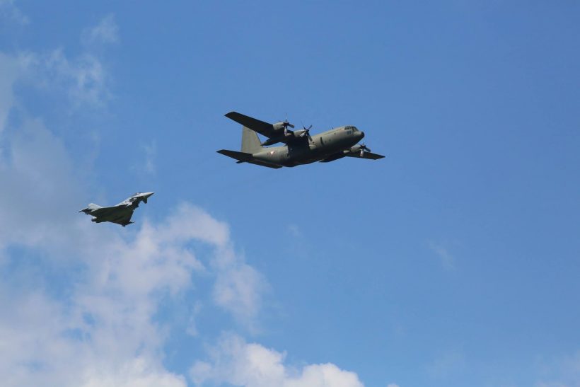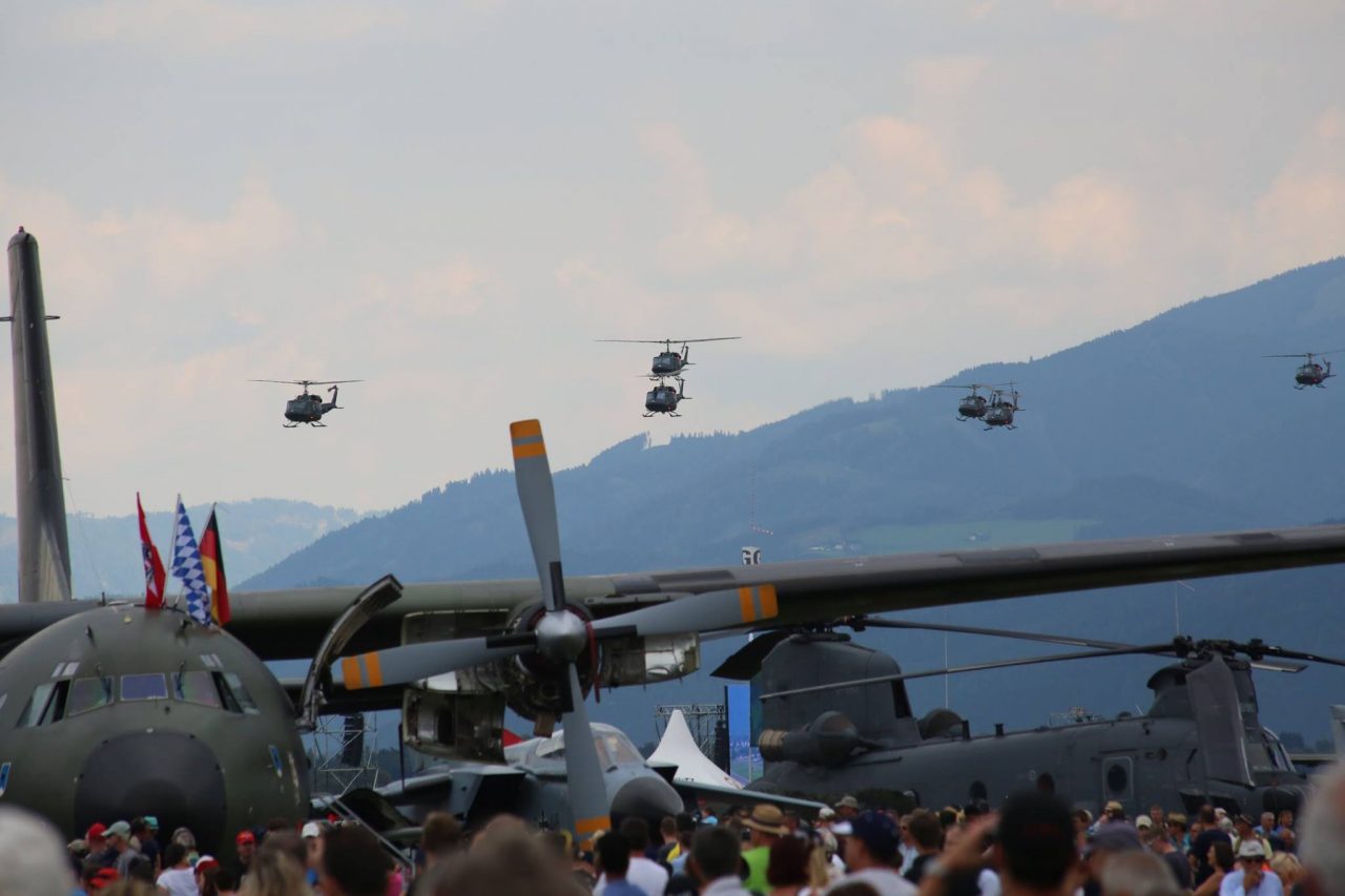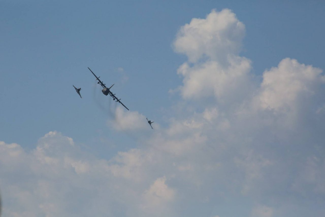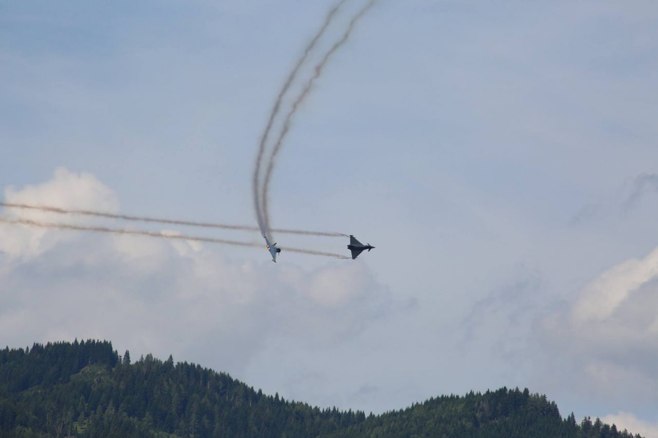 また、オーストリア連邦軍は彼らの装備とスキルを披露し、2つのユーロファイターが関心の的となっていました。パイロットはスクランブル発進で、C-130ヘラクレスを追跡し、着陸を妨害するというデモンストレーションを行いました。